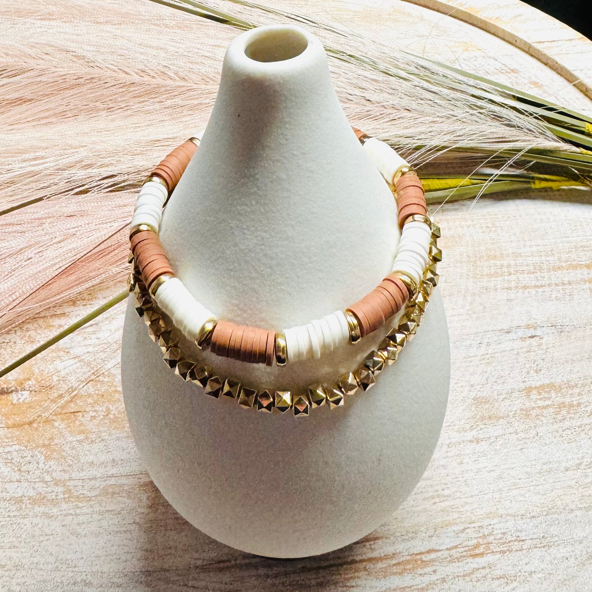 Clay Beads, Gold Spacers, Stretch Jewelry Fiber