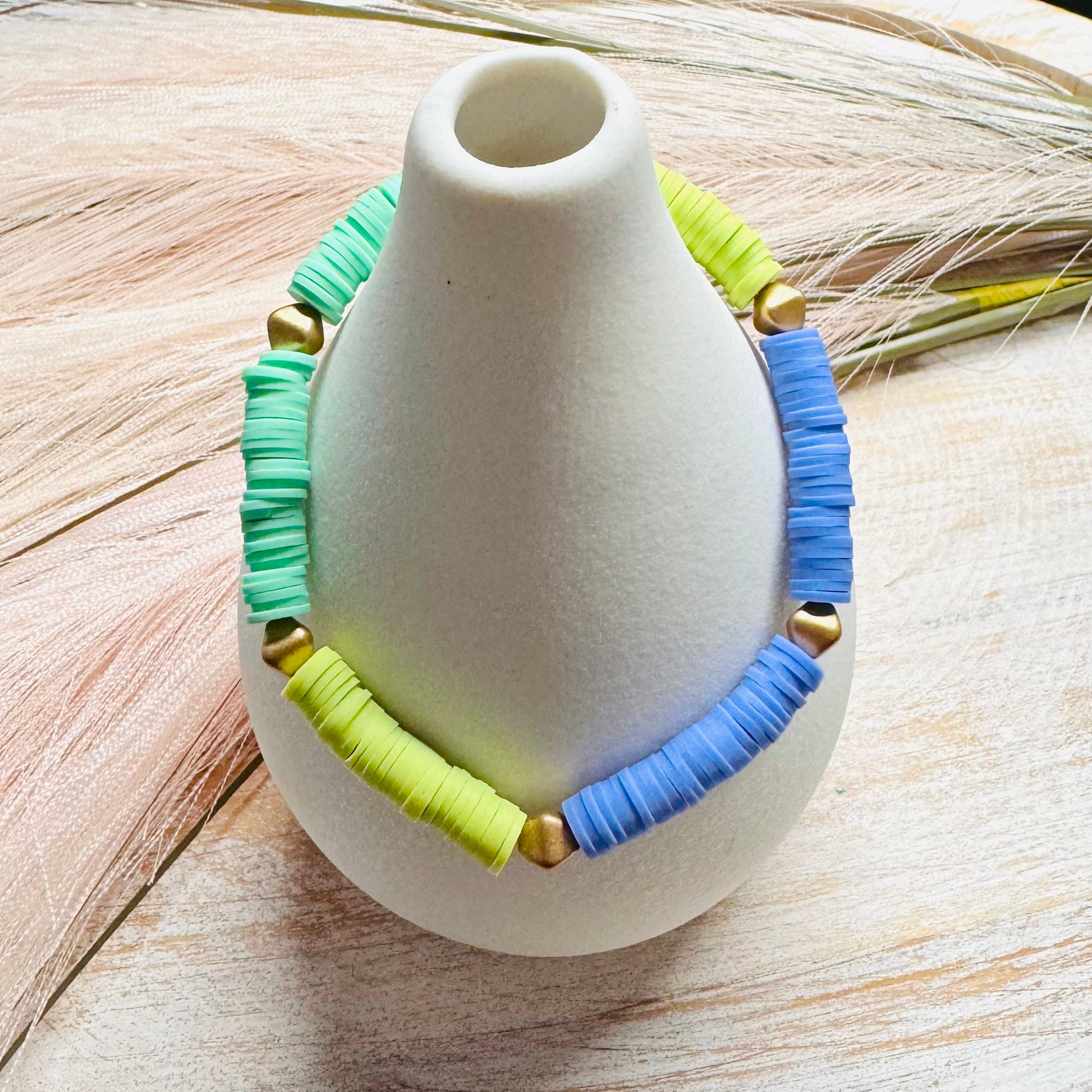 Clay Beads, Gold Wood Spacers, Stretch Jewelry Fiber